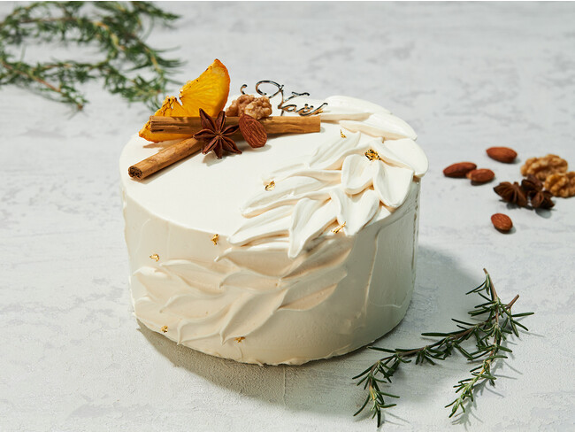 また、今年からヴィーガン対応のケーキも登場。豆乳クリームとバナナ風味のスポンジで仕上げた優しい味わいのケーキです。動物性の食材を使用しないため、ヴィーガンに興味を持つ方だけでなく、卵や乳が苦手な方も、みなさまで一緒に一つのケーキを囲んでクリスマスを過ごしてほしいという思いを込めて企画しました。シナモンスティックやドライオレンジなどをお好きに飾り、オリジナルのケーキをお作りいただけます。
