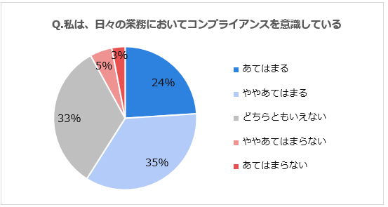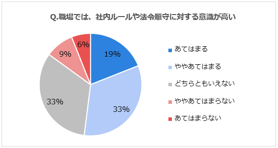 ・社内ルールや法令順守に対する意識が「高い」と認識している人は52%