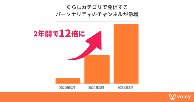今回Voicyで実施するのは、暮らしにまつわるトークテーマ特集です。現在Voicyでは、くらしカテゴリで発信をするパーソナリティのチャンネルが、この2年間で12倍に増えました。※1 また、Voicyユーザーの新規登録状況によると、この1年で女性利用者の割合が10%近く増えました。※2 暮らしにまつわる放送が増えたことをひとつの要因として、性別に関わらずあらゆる方々により一層Voicyでの聴取体験をお楽しみいただける環境が整ったことによるものと考えられます。