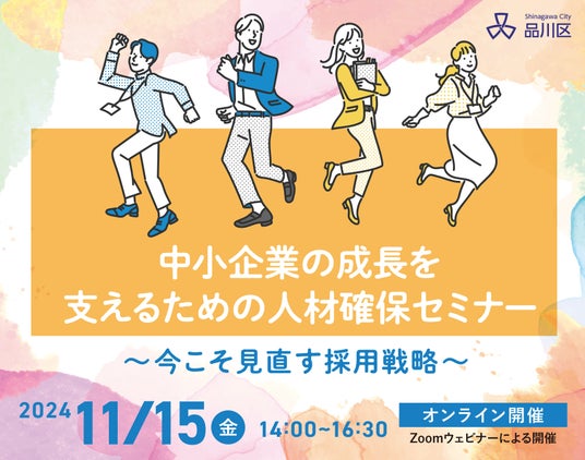 品川区では、本セミナーを通じて、人手不足の現状や最新の採用トレンドに関する講演、実際に採用活動の変革に成功した企業の事例紹介等を通じて、自社に合った採用戦略を検討する機会を提供します。