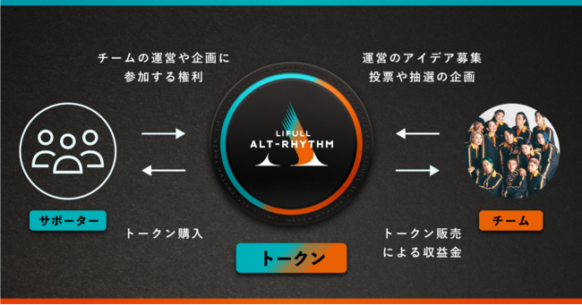 この度、LIFULLは、サポーターによるチーム運営への関わり方の強化や支援モデルの創出にチャレンジするため、「FiNANCiE」を活用した「LIFULL ALT-RHYTHM」のトークン「アルトリトークン」の発行・販売を開始し、保有者はトークン数に応じて、チームの意思決定に関わる新たな体験をすることができます。
