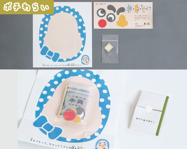 「ポチみくじ」と「ポチわらい」はその名の通り、おみくじと福笑いができる、ちょっと変わったポチ袋です。