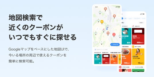 スマートフォンアプリから、コンビニや飲食店、映画館などのクーポンが地図検索で簡単に探せます。