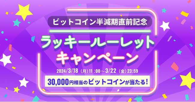 ビットトレード株式会社(所在地:東京都港区、代表取締役社長:関 磊、以下「ビットトレード」)は、3月18日(月)より、ビットコイン半減期直前記念!ラッキールーレットキャンペーンを開催いたします。