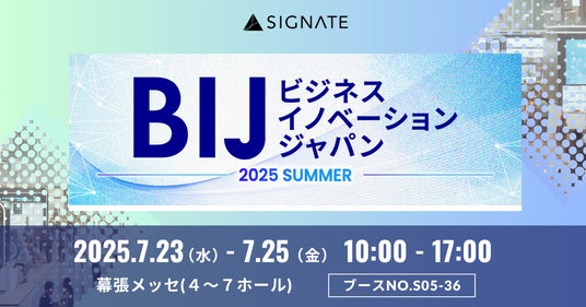 企業のDX内製化を支援する株式会社SIGNATE(本社:東京都港区、代表取締役社長:齊藤 秀、以下「SIGNATE」)は、2025年7月23日(水)から7月25日(金)に幕張メッセにて開催される「ビジネスイノベーション Japan 2025 夏 東京」に出展することをお知らせいたします。