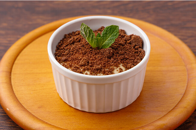 また、ご利用前日までに公式サイトからご予約されたお客さまを対象に、サンクスデザートとして「ティラミス」をご用意。なめらかな口どけのティラミスにココア風味のクランブルをトッピングし、“サクッ&トロッ”の食感を楽しめるシェフからの感謝の気持ちを込めたデザートです。