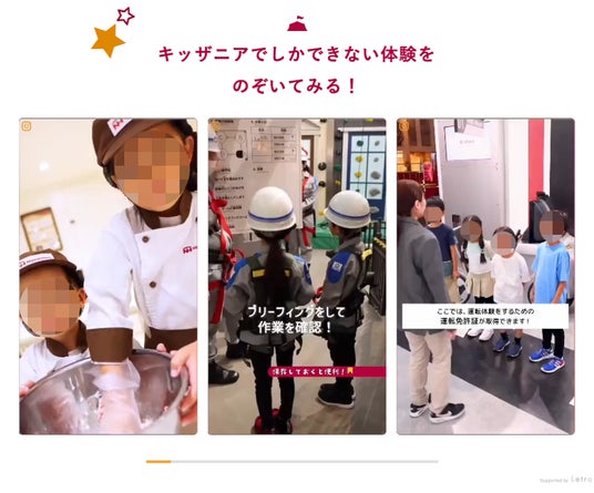 また、Instagramリールは、Letroが提供する「縦型動画表示機能」を活用して掲載。キッザニア公式Instagramアカウントで投稿するInstagramリール投稿をサイト上に掲載することで、動画コンテンツを通じてキッザニアでの体験や"楽しさ"を届けています。