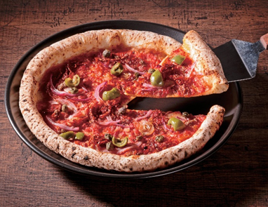 3. トマトソースの酸味にイタリア料理にかかせない食材をふんだんにトッピング。フレッシュさと素材本来の味わいが特徴のグリーンオリーブやトマトソースと相性の良いアンチョビ、ニンニク、ケイパーなどシチリアを感じられるこだわりの食材を使用しています。さらにドライトマトのスライスをトッピングすることで絶妙な酸味と旨みが口の中に伝わり、味にパンチを与えています。