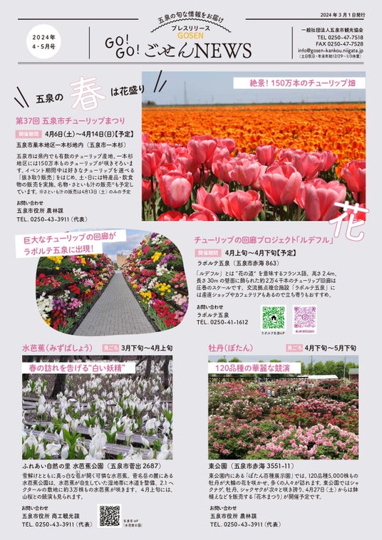 新潟県五泉市の旬な情報をお届けする、プレスリリース「GO!GO!ごせんNEWS」を発行いたしました。年6回の発行を予定しております。