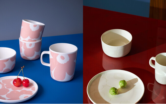 新作に登場するのは、モダンシックなカラーリングで彩られたウニッコ(Unikko/ケシの花)のホームコレクション。ホワイトのトーンオントーンでプリントされたウニッコのテーブルウェアやミッドナイトブルー×サンドベージュのウニッコのファブリックアイテムなどがラインナップ。温かみのある柔らかなカラーと大胆で引き締まった印象の原色を組み合わせることでモダンで落ち着いた空間を演出しします。