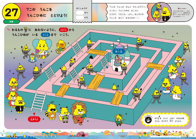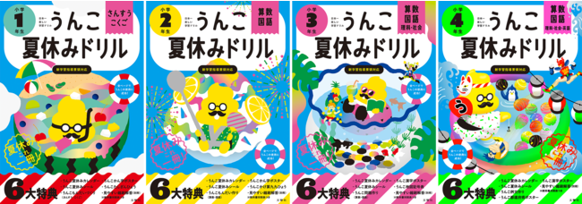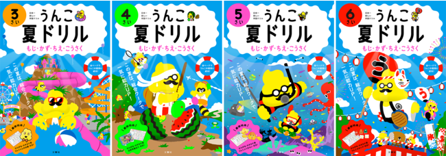 年齢ごとに、夏を感じる物語の中で問題に挑戦する内容になっています。キャラクターが繰り広げる、うんこが盛りだくさんの物語と楽しいイラストで、お子さまの興味・関心を引き出し、主体的な学習が期待できます。