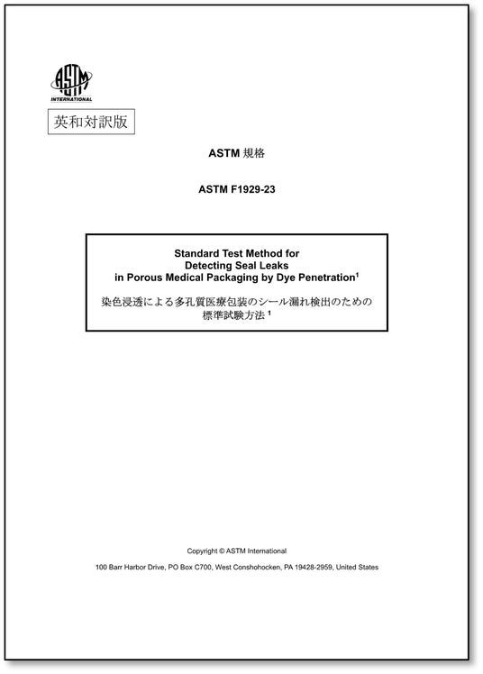 ● ASTM F1929 - 23「染色浸透による多孔質医療包装のシール漏れ検出のための標準試験方法」▼規格情報