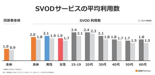 SVOD利用者の平均利用サービス数は全年代で増加