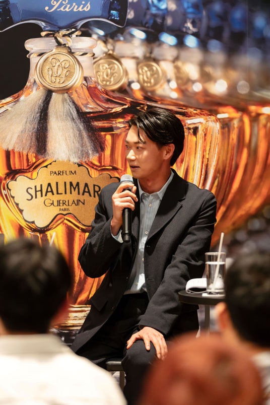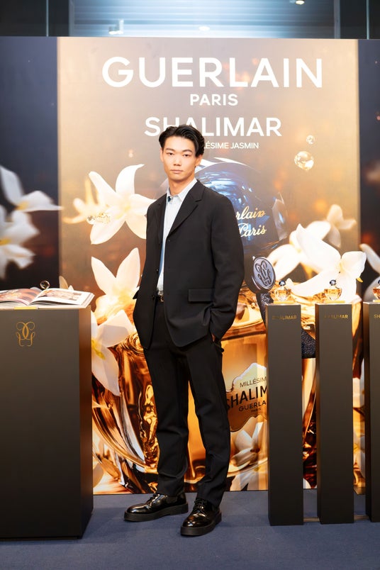 また、直近約一年間の中で香りを纏うようになった、と話す俳優の笠松将氏は、「香水をつける前は、香水は贅沢品だと思っていました。実際に使用してみると、香水を纏うことで気持ちのオンオフの切り替え、まさにスイッチのような役割を担ってくれている感覚を覚えました。なので、何もない日も香水を纏いますし、香水にハマっています。実は、普段僕もゲランの香水を愛用していて、いつも同じ香りを纏っています。」とのエピソードを展開しました。