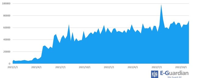 イー・ガーディアンは、安心・安全なインターネット環境の実現に向け、投稿監視、ソーシャルリスニング、ネットパトロール、カスタマーサポート、デバッグ、脆弱性診断などネットセキュリティに関わるサービスを一気通貫で提供しております。日々のソーシャルリスニングで蓄積したデータをベースに、イー・ガーディアンが今年Twitter上で広くつぶやかれたワードを独自で調査し、その年に最も多く投稿された(バズった)ワードを決める「SNS流行語大賞」。2022年は、人気漫画「ちいかわ」関連のフレーズが大賞に輝き、続いて2位に「#silent」、3位に「#ちむどんどん」と、漫画やテレビドラマ関連のフレーズがTOP3を占める結果となりました。