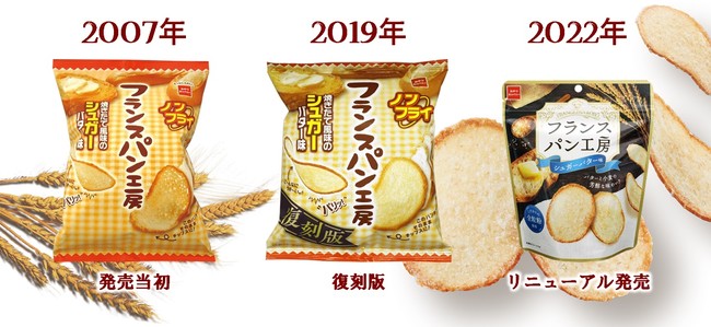 株式会社おやつカンパニー(所在地:三重県津市 代表取締役社長:手島文雄)は、フランスパンをそのままチップスにした「フランスパン工房(シュガーバター味)」を、2022年3月21日(月)より全国にてリニューアル発売します。