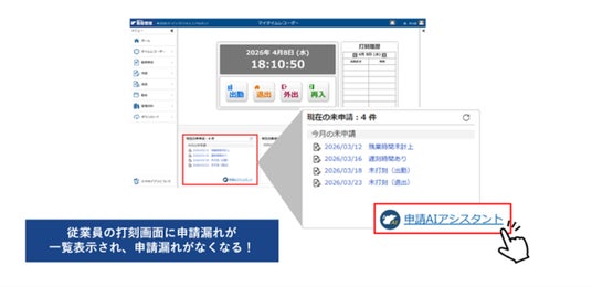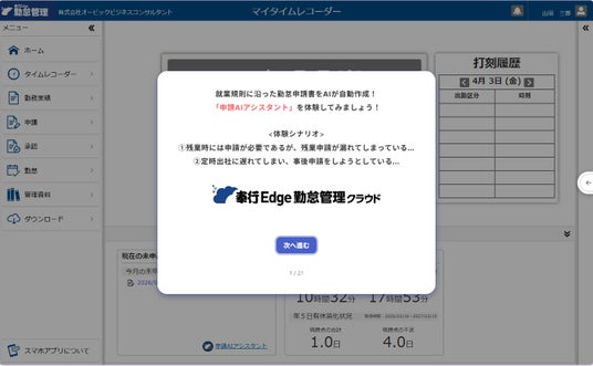 勘定奉行をはじめとする奉行クラウドなどの基幹業務システムを開発・販売する株式会社オービックビジネスコンサルタント(代表取締役社長:和田 成史/本社:東京都新宿区/以下OBC)は、クラウド勤怠管理システム・ソフト『奉行Edge 勤怠管理クラウド』において、就業規則に沿った勤怠申請書をAIが自動作成する業界初(※1)の「申請AIアシスタント」を2026年4月16日より提供開始いたします。
