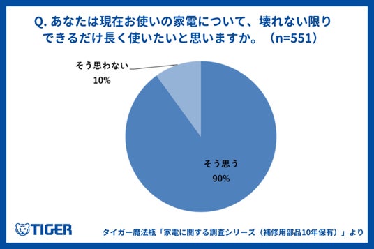 6月5日は「世界環境デー」です。環境保全の重要性を再認識し、環境への意識を高めるための日です。そこで、補修用部品10年保有を掲げ、熱制御テクノロジーで世界をリードするタイガー魔法瓶株式会社(社長:菊池嘉聡、本社:大阪府門真市)は、家電に関する調査シリーズとして20代~60代の男女551人に実施した調査結果を発表しました。
