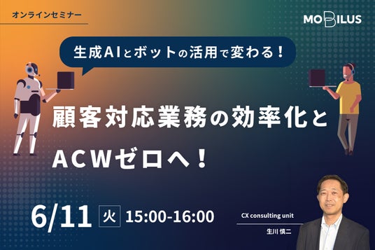 The SupportTech Companyとして顧客サポート支援のソリューションを開発・提供するモビルス株式会社(本社:東京都港区、代表取締役社長:石井智宏)は、6月11日(火)に『生成AIとボットの活用で変わる! 顧客対応業務の効率化とACWゼロへ』というテーマでオンラインセミナーを開催します。