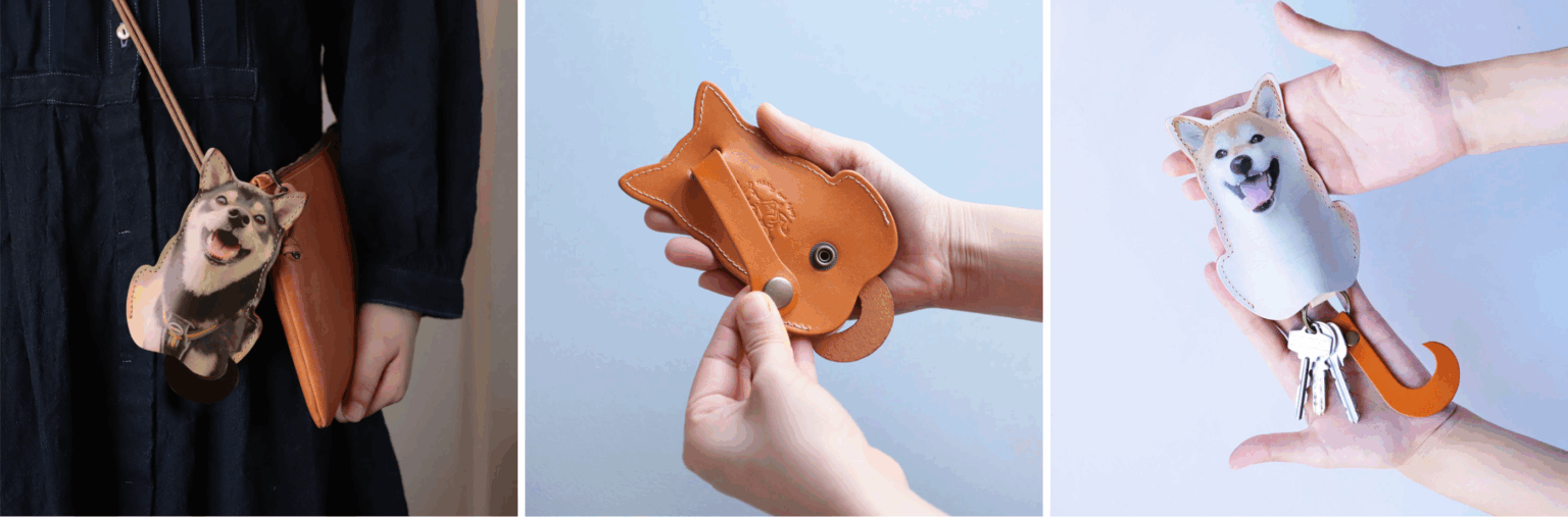 愛犬の写真でつくる、本革のキーケースです。大切な家族の一員を、世界にひとつのかたちに。