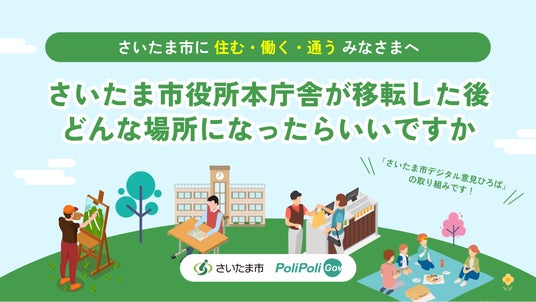 株式会社PoliPoli(所在地:東京都千代田区、代表取締役:伊藤和真、以下 PoliPoli)は、さいたま市が実施する市役所移転に伴う現庁舎地の利活用に関するアイデア募集に『PoliPoli Gov』が導入されることをお知らせします。