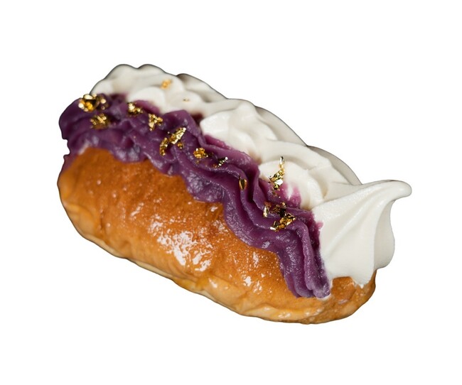 旬の紅いも餡を使用し、金粉を添えて上品なヴィジュアルに仕上げました。