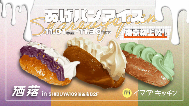 株式会社SHIBUYA109エンタテイメント(本社:東京都渋谷区/代表取締役社長:石川 あゆみ)が運営する「IMADA KITCHEN(イマダ キッチン)」では、株式会社洒落(本社:福岡県久留米市/代表取締役:高山 賢人)が展開する「洒落CAFE」の大人気商品「あげパンアイス」を、2023年11月1日(水)~2023年11月30日(木)の期間限定で販売いたします。