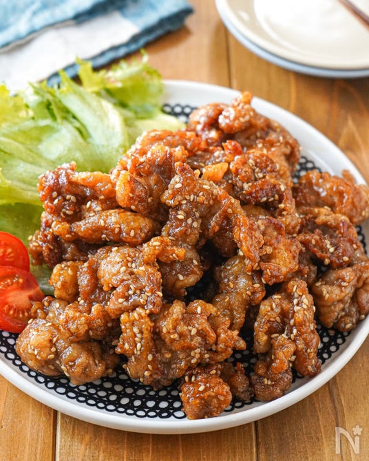 包丁不要!カリカリ豚こまの甘酢ごま和え