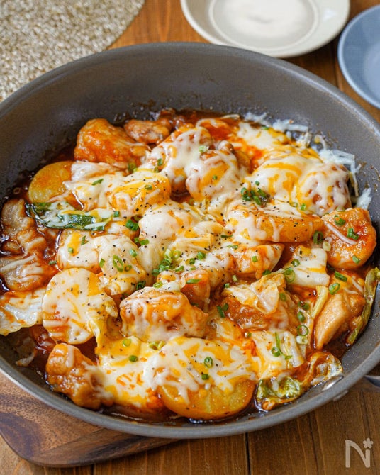 ▶【男子大絶賛!ヤンニョム風じゃがチーズチキン】スタミナ満点(ハート)