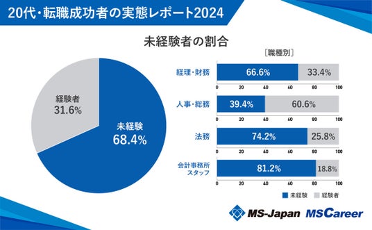 20代の転職成功者のうち、決定したポジションの経験がない方の割合は全体の68.4%を占めていました。