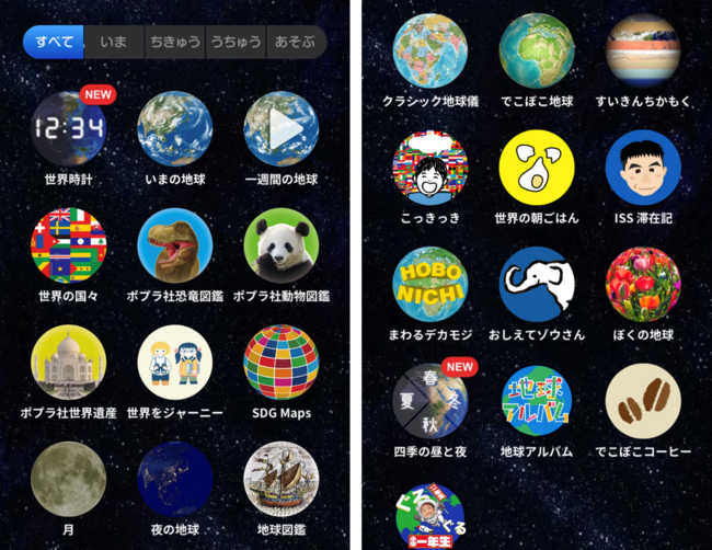 すべて無料で利用できる専用アプリのコンテンツは、教育的なものから親子で遊べるものまで、大人も子どももたのしめるラインナップ。コンテンツは今後も追加されていきます。