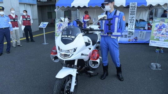 茨城県警察本部から、パトカーと白バイを展示!