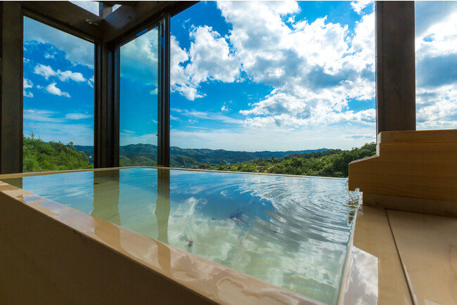 ドームテントに滞在頂く宿泊体験とともにホテル内の温泉施設「銀河の湯」での源泉かけ流しの天然温泉を楽しむ入浴体験など、ラグジュアリーな絶景・温泉グランピング体験をお楽しみ頂けます。オープンから連日多くのお客様にご好評を頂いており、この度、新しい客室タイプとして全棟に専用の温泉風呂を完備したハイエンドタイプの「スパスイート」がオープン致します。