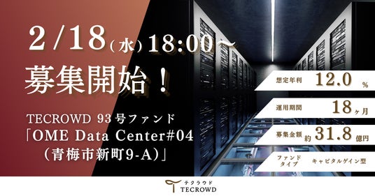 2026年2月18日(水)18時より93号ファンド「OME Data Center #04(青梅市新町9-A)」の募集を開始いたします。