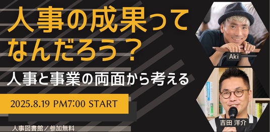 株式会社Trustyyle(本社:東京都中央区・代表取締役:吉田洋介)は、運営するコミュニティ「人事図書館」にて、2025年8月19日(火)に対面イベント「『人事の成果ってなんだろう?』人事と事業の両面から考える」を開催いたします。