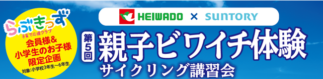 株式会社平和堂(滋賀県彦根市、代表取締役社長執行役員:平松正嗣、以下「平和堂」)とサントリーフーズ株式会社(以下、サントリーフーズ、東京都港区、代表取締役社長 小木曽茂樹)、サントリー株式会社(本社:東京都港区、代表取締役社長:鳥井信宏、以下「サントリー」)は、11月3日(金・祝)のビワイチの日にあわせて、10月28日(土)に「親子ビワイチ体験サイクリング講習会」を開催します。