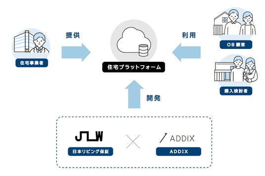 日本リビング保証が保有する住宅業界のデータおよび長年のアフターサービス提供によって培ってきたノウハウに、ADDIXの持つデータ分析手法やクリエイティブ機能を組み合わせることで、新規見込み顧客及び既存住宅オーナー様と住宅事業者様双方を日常的かつ継続的につなぐプラットフォームの創出を目指します。