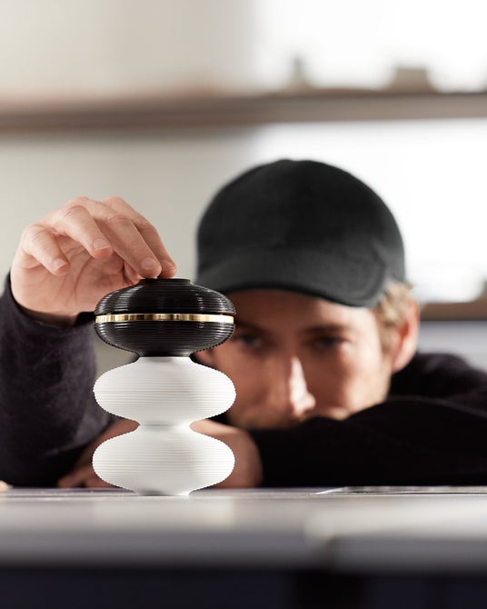 ここまで特徴的なシルエットのブラックジャーのデザインを考え直すにあたり、オラ・イトはこの完全に対称的な曲線の設計に1年以上を費やしました。ブラックオーキッドとその花びらの溝を再度解釈し直す中で、オラ・イトは、曲線の儚さと動きの具体化という、自身のシグネチャーをそこに刻み込みました。何よりも重力の法則にあらがうことを愛するオラ・イトが作り出したジャーは、まるで無重力のようにさえ見えます。その無重力なジャーに細やかな線が描かれることで深みとテクスチャーが生まれ、素材と光の効果を巧みに活かされた作品に仕上がっています。