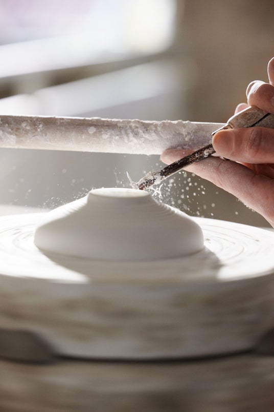 デザイナーのオラ・イトが作り出した革新的なデザインは、このフランス磁器メーカーにとっても新たな挑戦となりました。オラ・イトが求めた、極薄の磁器と溝の均一性を実現するためには新しいテクニックの開発、そしてゲランだけのために製造プロセスのカスタム調整が必要でした。この精巧なオブジェを作り上げるためには、美しく精巧なジャーの制作に決して欠かせないエナメルプロセスを一から組み立て直さなければならなかったのです。