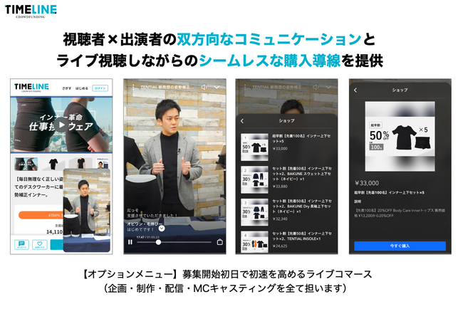 さらに、累計7,900本以上のライブ配信ノウハウを活用したライブコマース番組の配信ができるサービスも展開。番組は実績のある専門チームが企画・制作・配信を行い、商品の理解促進と充実度の高いユーザー体験を提供。購入動機を高めることができるので、クラウドファンディングの成功を強力に後押しします。