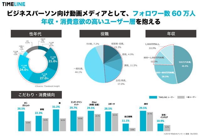 【特徴1. メディア配信による集客支援】 動画メディア運営のノウハウをいかし、商品や企業のストーリーを丁寧に取材し動画を制作。制作した動画は、ビジネスパーソン向け動画メディア『TIMELINE』で配信します。SNSファン数60万人、月間リーチ数1,000万人を超えるメディア力で集客支援が期待できます。