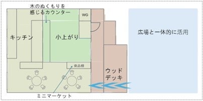 7棟集会所はフルリノベーションにより、高齢者も若者も立ち寄れ、好きなことができる多世代交流・多目的使用できる集会所として生まれ変わります。広い厨房とカウンターを備えたキッチンはシェアキッチンとしても使用できます。また、ちょっとした日用品を買えるミニマーケットでの助け合いの場、様々な方の仕事・交流・チャレンジ・学びの場となることをめざしています。