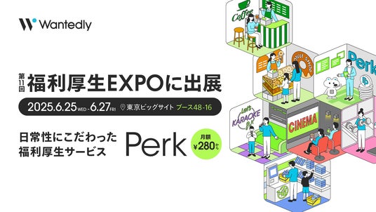 福利厚生サービス「Perk(パーク)」を提供するウォンテッドリー株式会社(本社:東京都港区、CEO:仲暁子、以下「ウォンテッドリー」)は、2025年6月25日(水)~6月27日(金)に、東京ビッグサイト(東京・江東区)で開催される「第11回 福利厚生EXPO【春】」へ初出展します。