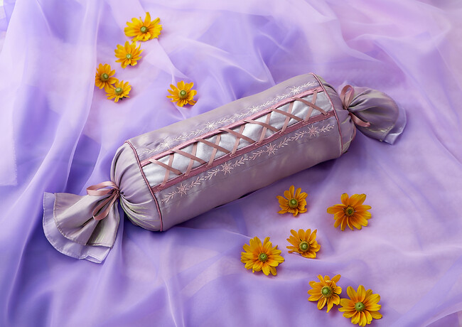 ラプンツェルをイメージしたボルスター型のクッションです。ラプンツェルの衣装をモチーフに、レースアップや刺繍を施したこだわりのデザインです。シンプルな円柱型は抱き心地もよく、ソファやベッドのアクセントに最適です。