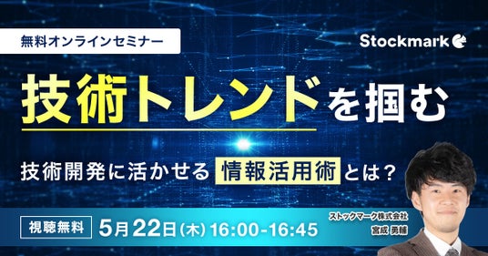 最先端の自然言語処理AIを活用した情報収集サービス『Anews・Astrategy』を提供するストックマーク株式会社(以下、「当社」)はオンラインセミナー『技術トレンドを掴む 技術開発に活かせる「情報活用術」とは?』を5月22日(木) に開催致します。