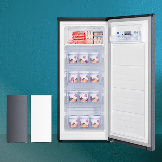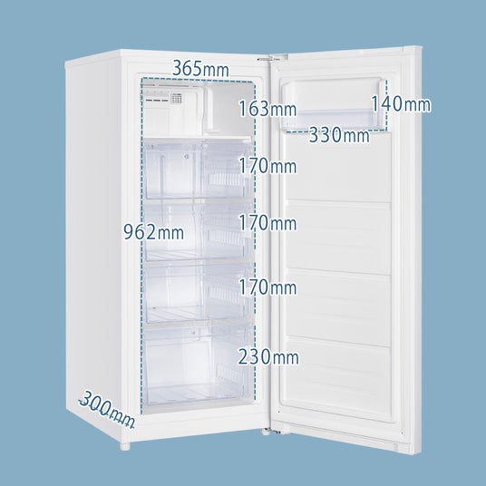 スリムなシルエットでありながら、125Lの容量を有しており、また、庫内には5段の収納があるので、まとめ買いした食品や業務用サイズの冷凍食品、作り置きした料理やふるさと納税の返礼品など、様々な食材を整理して保存することができます。