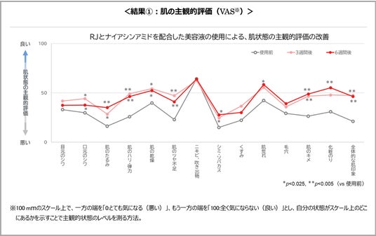RJとナイアシンアミドを配合した美容液を6週間使用することで、