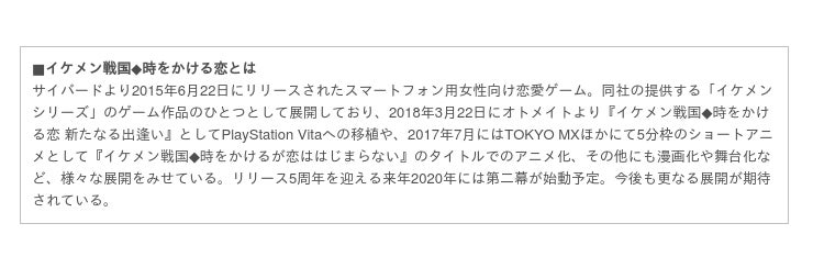 原作:CYBIRD『イケメン戦国◆時をかける恋』