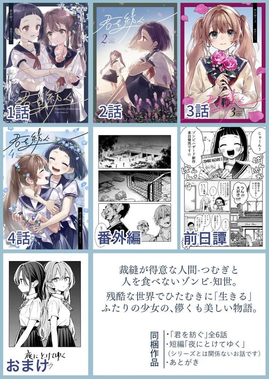 裁縫が得意な人間「つむぎ」は、人を食べないゾンビの友達「知世」の脆くなった手首を縫い合わせるのが日課。