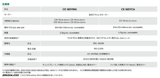 CE 18DYMA : https://www.hikoki-powertools.jp/products/powertools/li-ion-cutter/ce18dyma/ce18dyma.html